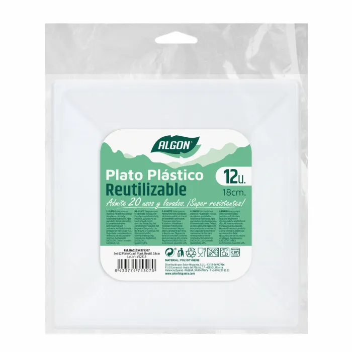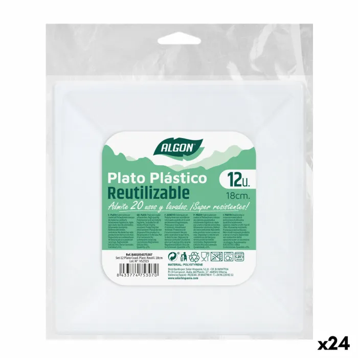 Set of reusable plates Algon Squared Plastic 18 x 18 x 1,5 cm (24 Units)