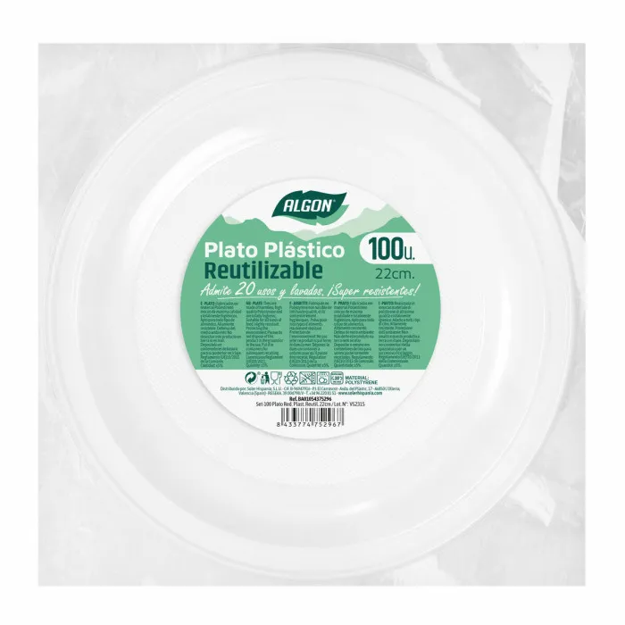 Set of reusable plates Algon Circular White Plastic 22 x 22 x 1,5 cm (6 Units)