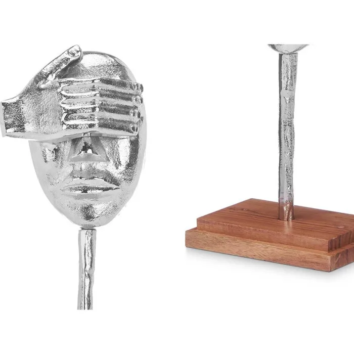 If you want to add a touch of originality to your home, you will do so with Decorative Figure Face Silver Wood Metal 16 x 34 x 10 cm. This exquisite piece of art is not just a decorative figure; it is a statement of style that reflects your unique personality and taste. Crafted with a perfect blend of wood and metal, this decorative figure showcases a captivating face design that draws attention and sparks conversation. The elegant silver finish enhances the visual appeal, making it a striking centerpiece for any room in your home. Whether placed on a mantelpiece, side table, or shelf, this figure will enrich your décor with its artistic charm.