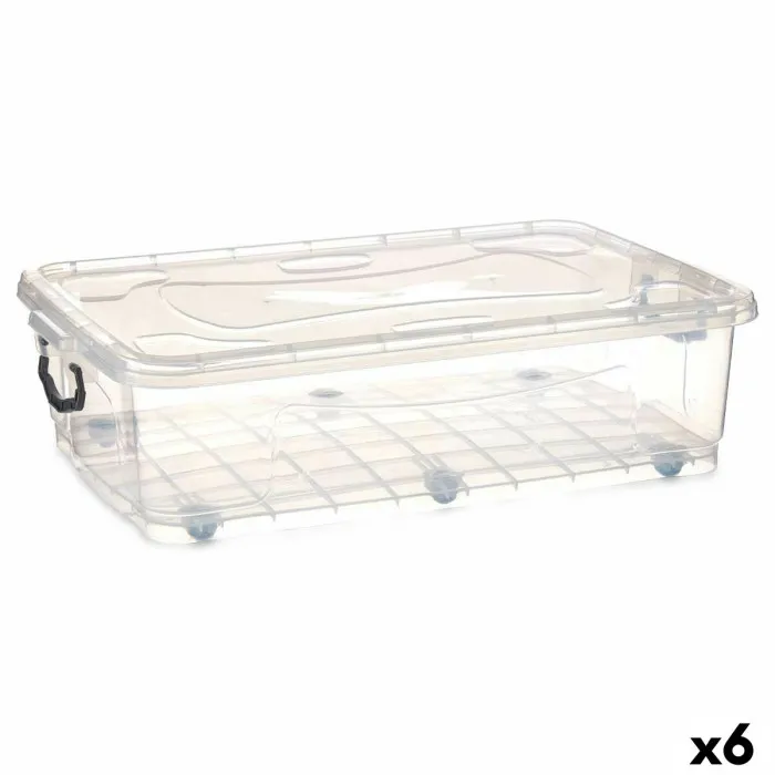 Storage Box with Wheels Transparent Plastic 40 L 46,5 x 20 x 72,2 cm (6 Units)
