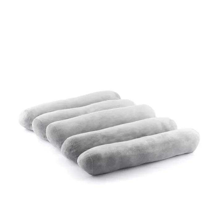 A multifunctional and multi-purpose modular pillow with an original and versatile multi-position design that adapts easily to different postures (lying down, seated, reclining, etc.) depending on your needs and preferences at any time and place. It can be used in a multitude of settings, such as the home, the office, the car, etc. (on sofas, chairs, beds, on the floor...), and for different activities, such as working from home, travelling, reading, relaxing, sleeping, etc. This original ergonomic tube-design pillow consists of 5 connected modules that can be folded and unfolded easily to achieve their various uses and positions. It is also very comfortable and convenient, great for rest and relaxation, it is lightweight and very soft, and has a pleasant velvety feel. Its structure helps to align the back, neck and lumbar area. It is highly practical and prevents the need to use several pillows. It is also worth pointing out that it does not lose its shape and moulds easily to any body position. It can be hand-washed to keep it clean.