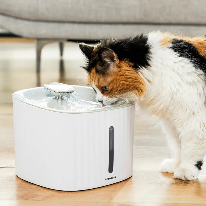 The Drinkatt InnovaGoods pet water fountain provides higher quality, fresher and cleaner water for animals to drink and quench their thirst in greater comfort and safety. Its internal pump allows a continuous flow of water so that the water is in constant motion. It also includes several optional filters for further purification of water if desired.