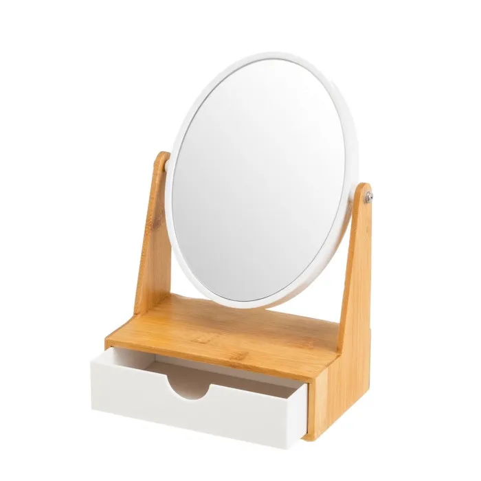 Magnifying Mirror White Natural Bamboo Crystal polystyrene 17 x 10 x 25 cm