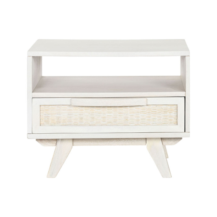 Nightstand Home ESPRIT White Rattan Mango wood 55 x 35 x 45 cm