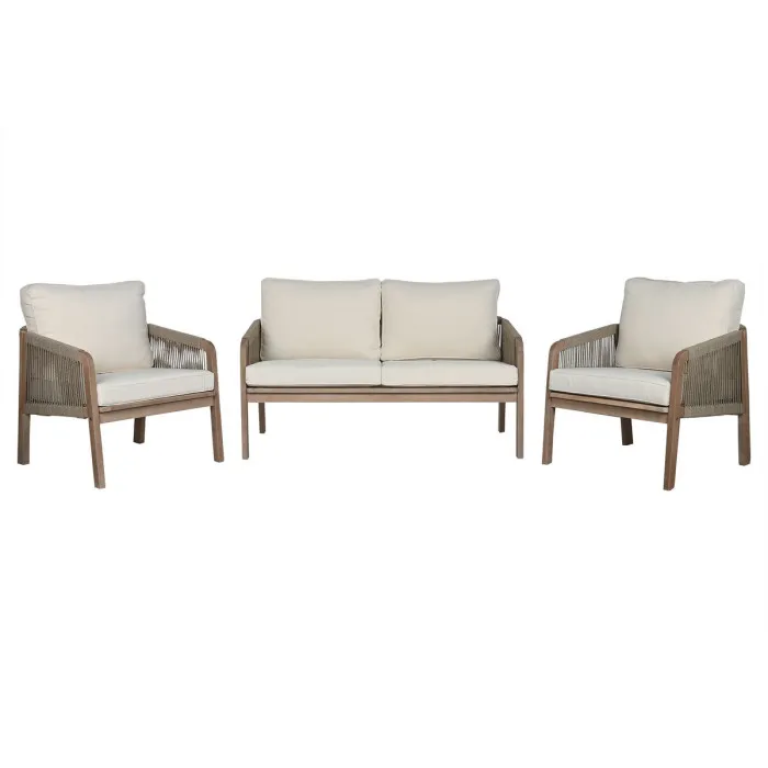 Table Set with 3 Armchairs Home ESPRIT Brown Rope Acacia 138 x 79 x 83 cm
