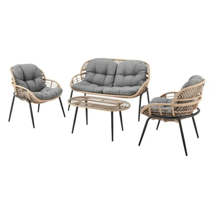 Table Set with 3 Armchairs DKD Home Decor Grey Metal Crystal synthetic rattan 130 x 76 x 83 cm