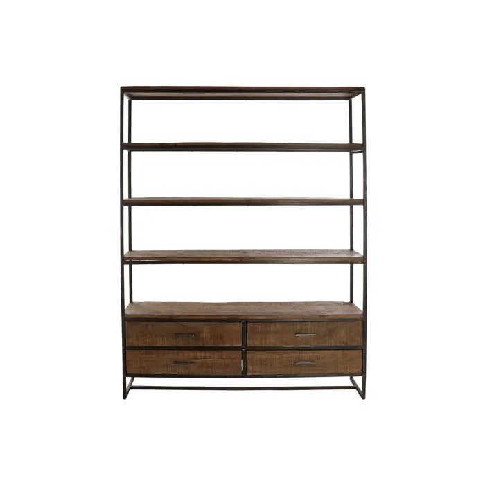Shelves DKD Home Decor Black Metal Brown Acacia 145 x 35 x 190 cm