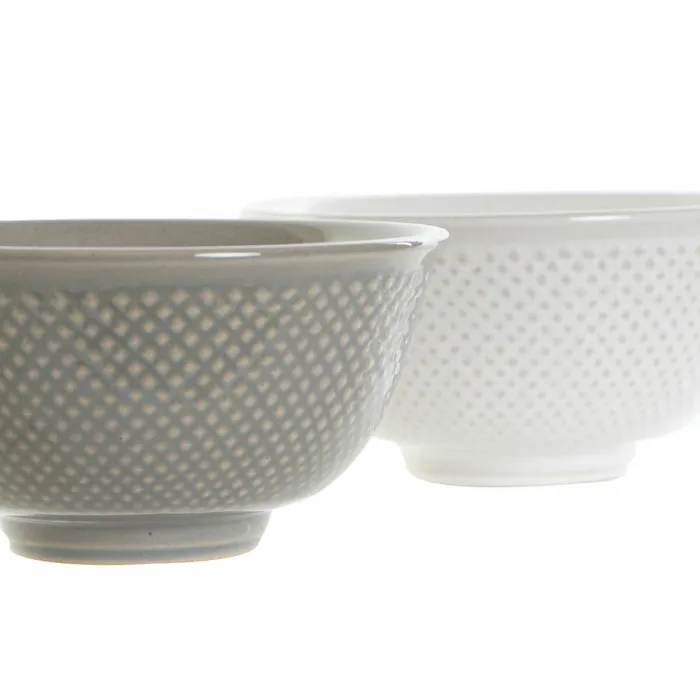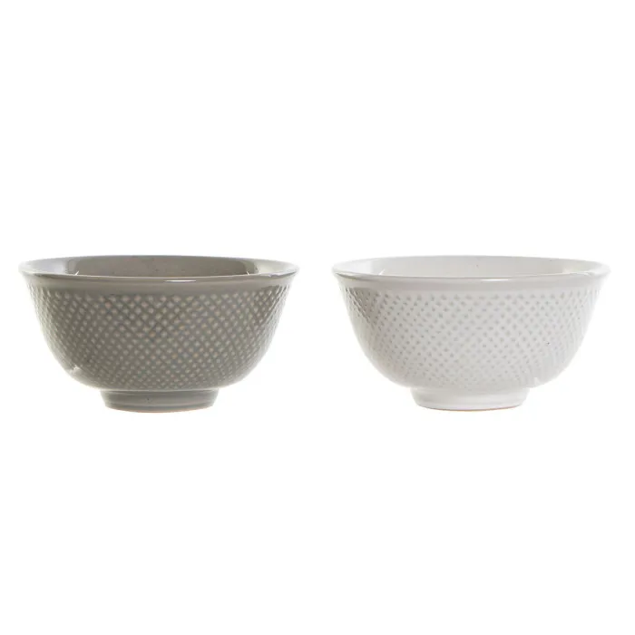 Bowl DKD Home Decor White Grey Porcelain Vintage 12,5 x 12,5 x 6,5 cm 2 Pieces