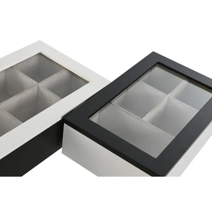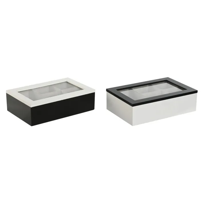 Box for Infusions Home ESPRIT White Black Metal Crystal MDF Wood 23 x 15 x 6,5 cm (2 Units)