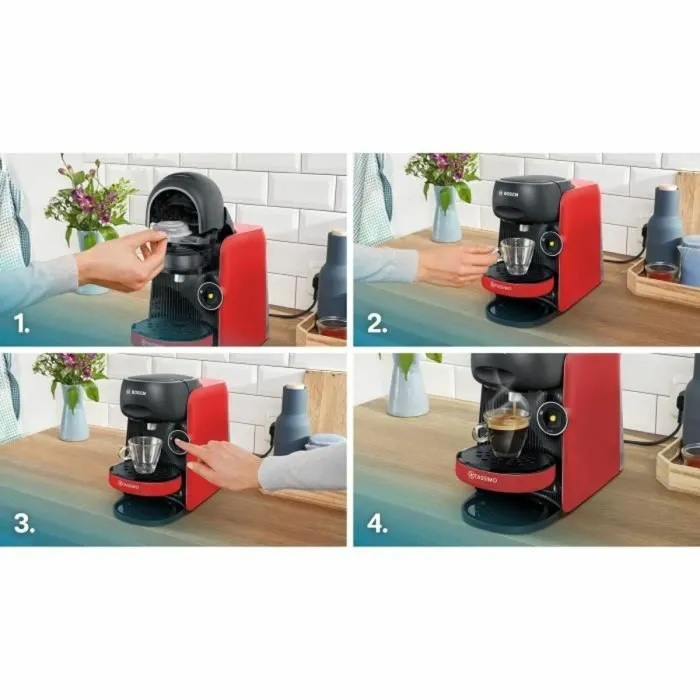 Capsule Coffee Machine BOSCH TAS163E T16 Finesse Black Red rouge 1400 W 700 ml