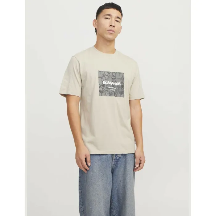 Men’s Short Sleeve T-Shirt Jack & Jones JCOTARMAC CAMO FRONT TEE Beige