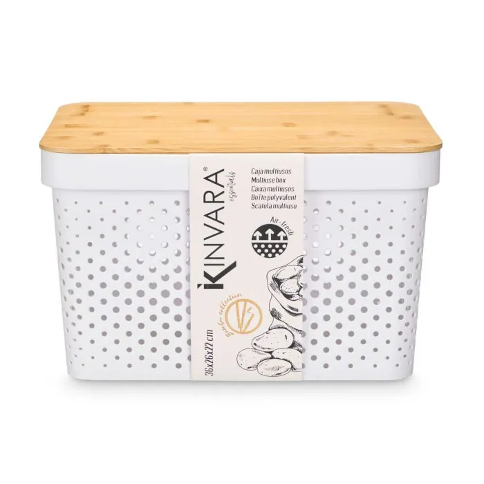 Multi-use Box Kinvara CH52970 (25) White Brown Bamboo polypropylene 35,7 x 22 x 26,2 cm (4 Units)