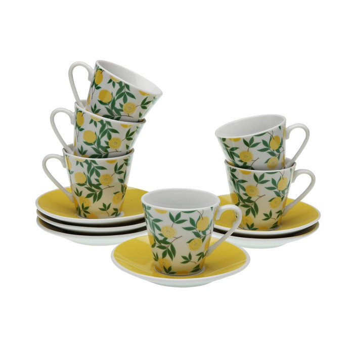 Set of Mugs with Saucers Versa Porcelain Lemon