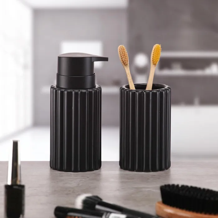 Soap Dispenser Versa Black Ceramic Bamboo