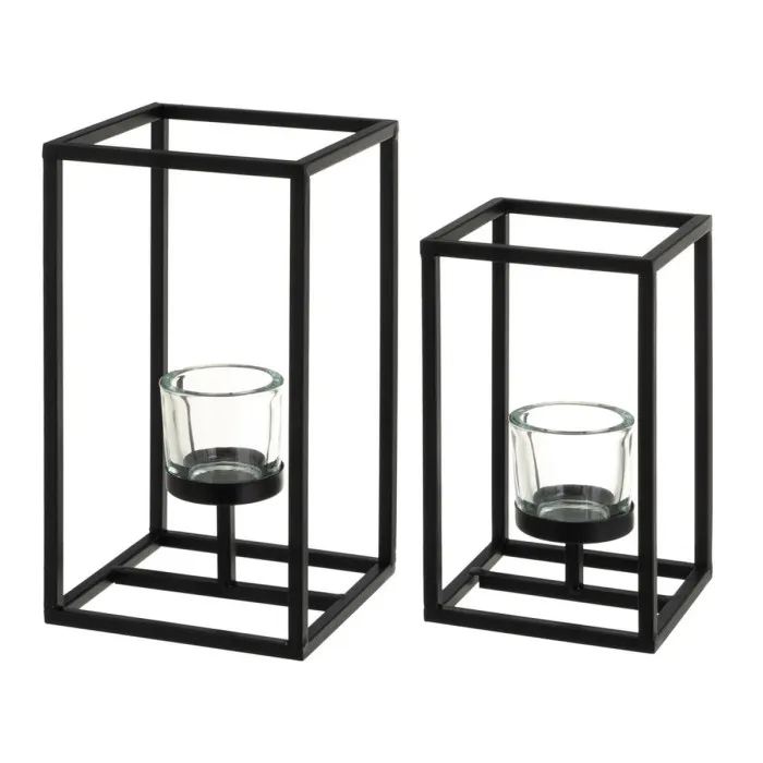 Table Mat Set Black Crystal Iron 14 x 14 x 25 cm (2 Units)