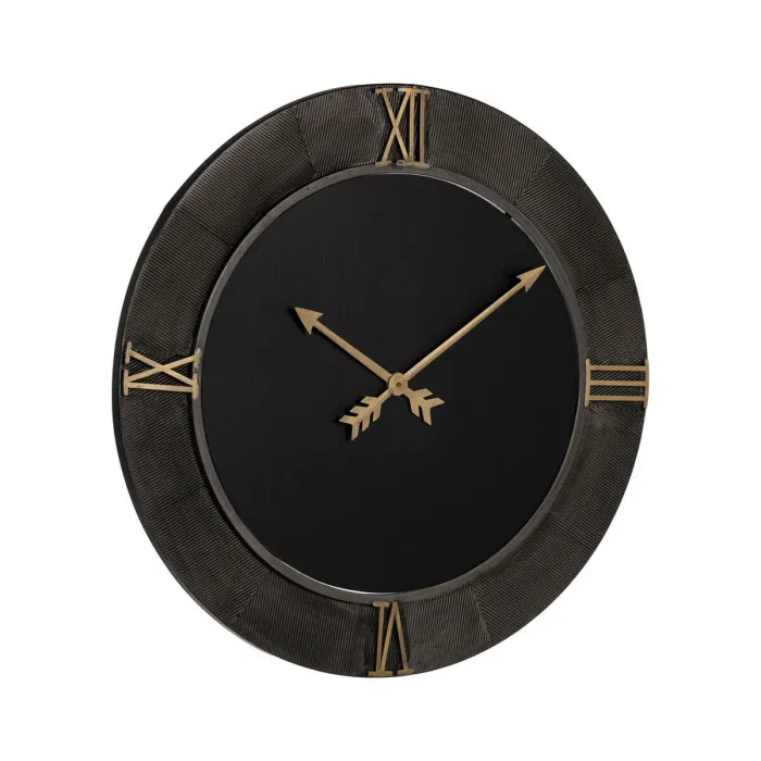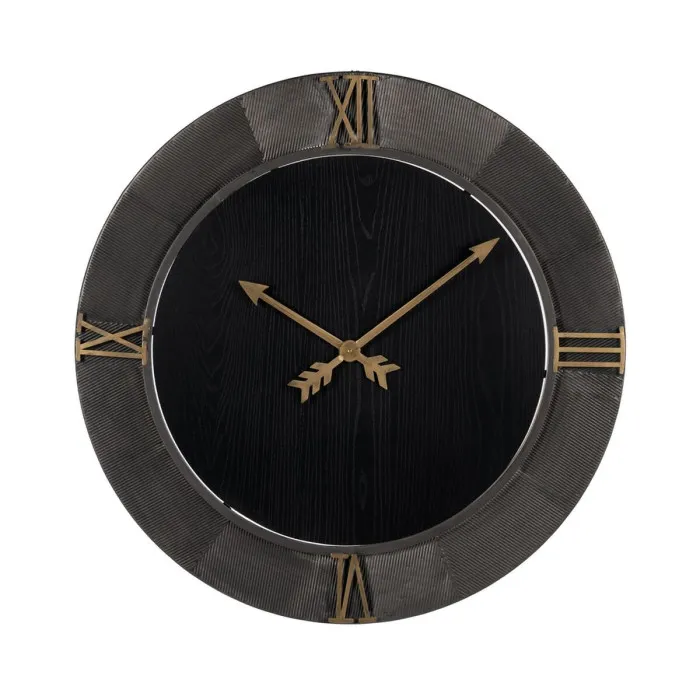 Wall Clock Black Golden Iron MDF Wood 80 x 2,5 x 80 cm