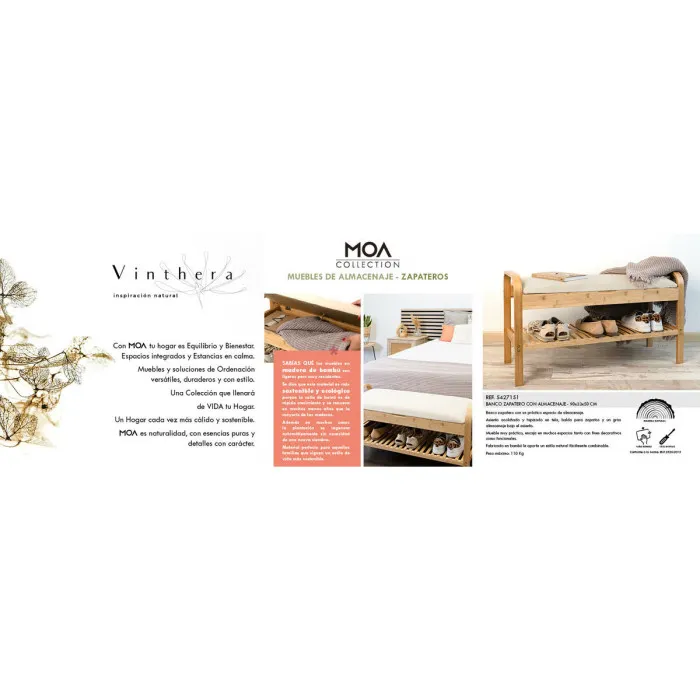 Shoe bench Vinthera Moa Beige Wood 90 x 33 x 50 cm