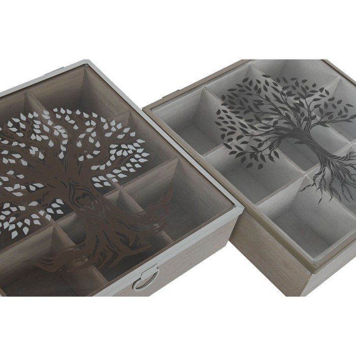 Box for Infusions Home ESPRIT Brown Beige Metal Crystal MDF Wood 24 x 24 x 6,5 cm (2 Units)
