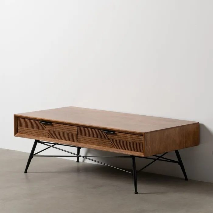 Centre Table LAGOM Black Natural Iron Rubber wood 120 x 60 x 40 cm