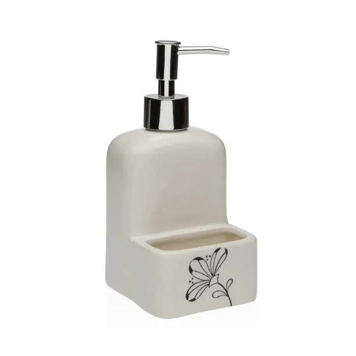 Soap Dispenser Versa Ceramic ABS Dolomite Flowers 9 x 18,5 x 8 cm