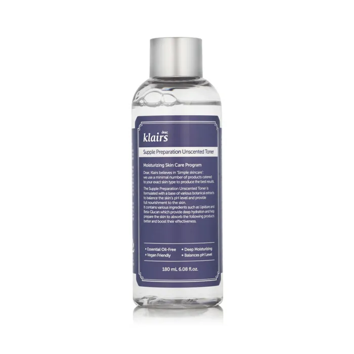 Facial Toner Klairs Supple Preparation Moisturizing Balancing is a premium skincare product that caters to the needs of those who prioritize their physical appearance and seek only the finest cosmetics for enhancing their natural beauty. This toner goes beyond ordinary skincare, offering a unique blend of high-quality ingredients that work synergistically to restore and maintain your skin's health. Infused with the goodness of natural extracts such as Centella asiatica and Glycyrrhiza glabra, this formula not only hydrates but also soothes and balances the skin's complexion, making it ideal for individuals with varied skin types.
