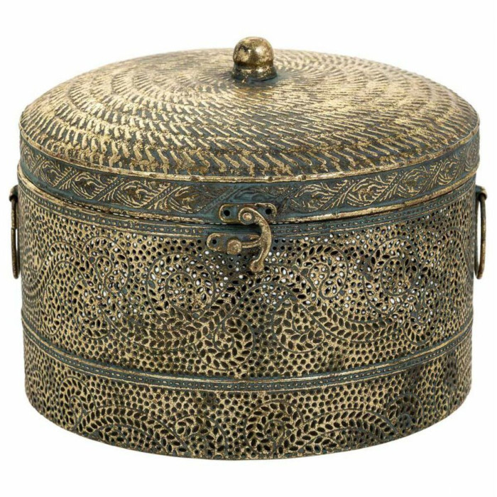 Set of decorative boxes Alexandra House Living Golden Iron 24 x 25 x 19 cm 18,5 x 18,5 x 15 cm 2 Pieces