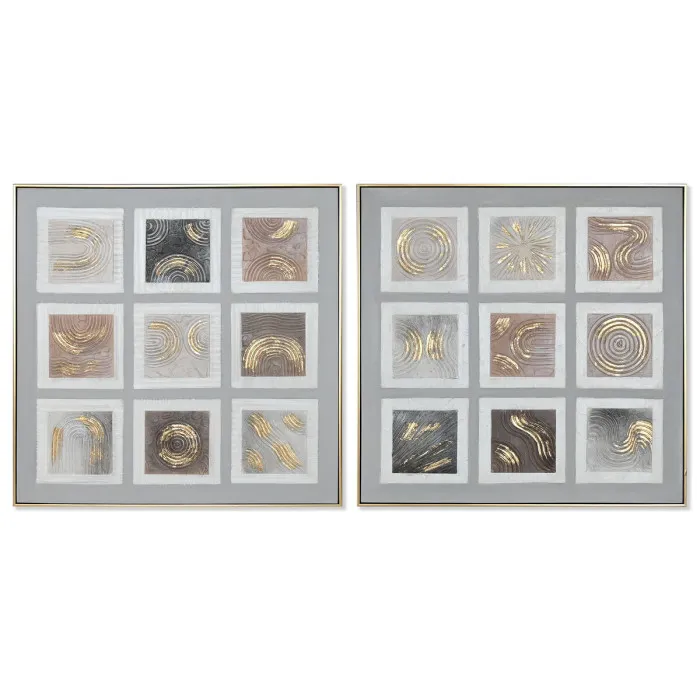 Painting Home ESPRIT Brown Beige polystyrene Canvas Squared Urban 82 x 5 x 82 cm (2 Units)