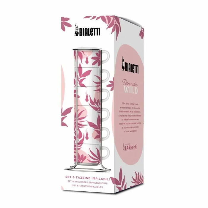 6 Piece Coffee Cup Set Bialetti 29596 White Pink Porcelain 90 ml (6 Units)