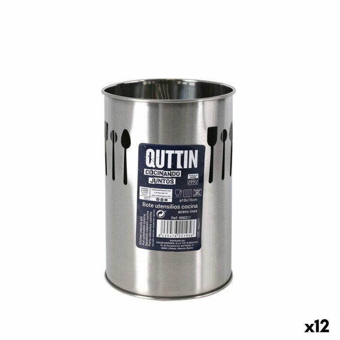 Pot for Kitchen Utensils Quttin Silver Stainless steel 10 x 15 x 10 cm (12 Units)