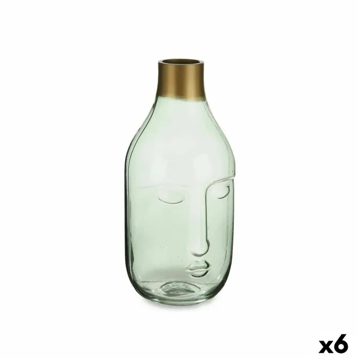 Vase Face Green Glass 11 x 24,5 x 12 cm (6 Units)