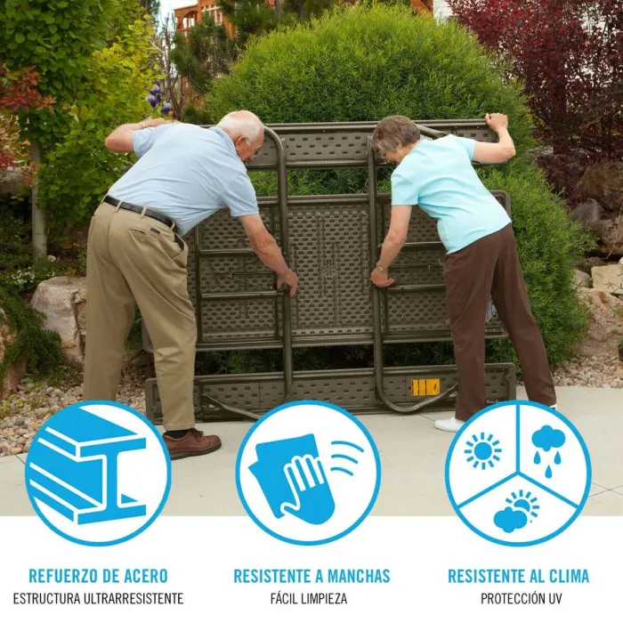 Folding Table Lifetime Wood Brown Picnic Steel Plastic 183 x 74 x 145 cm