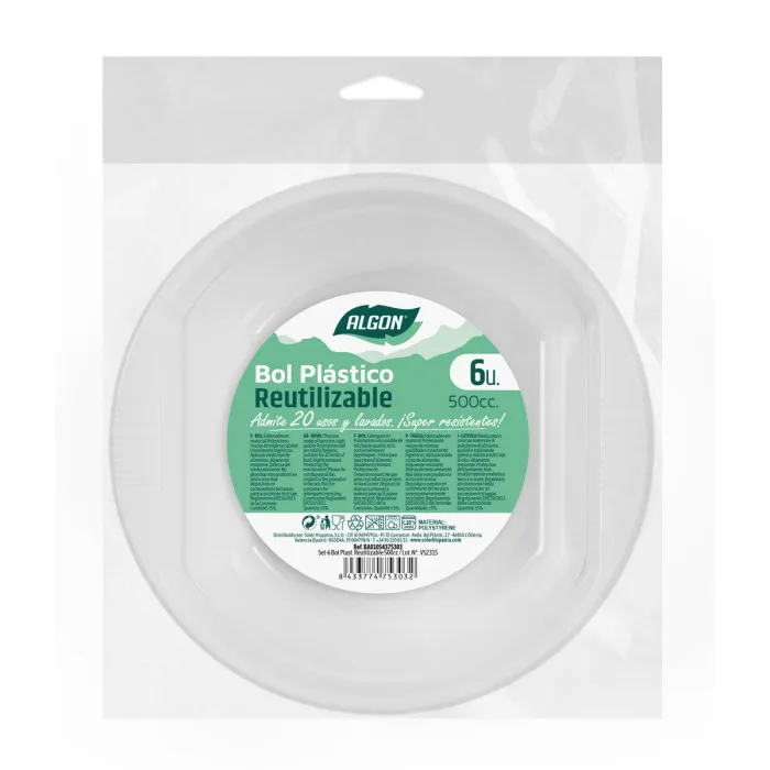 Set of reusable bowls Algon Circular White Plastic 500 ml 6 Units 16 x 16 x 5 cm