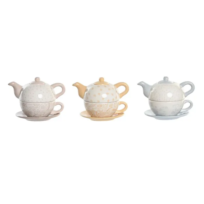 Tea Set DKD Home Decor Blue Pink Yellow 750 ml Dolomite (3 Units)