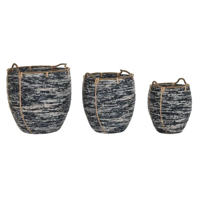 Basket set DKD Home Decor White Black Boho 56 x 56 x 60 cm 52 x 52 x 60 cm Plastic 3 Pieces