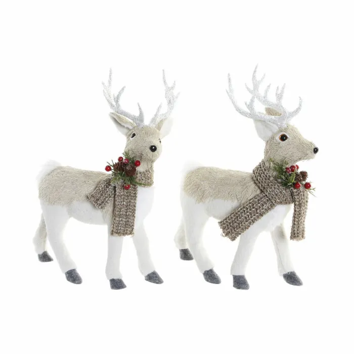 Christmas bauble DKD Home Decor Beige Polyester White polystyrene Reindeer (9 x 24 x 33 cm)