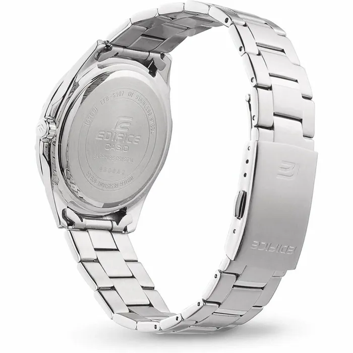 The CASIO Edifice EFR-S108D-1AVUEF watch from the renowned BigBuy Home brand is a unisex model that combines elegance and functionality with a discreet design in black and gray tones, ideal for daily use and formal occasions. Its case and strap made of stainless steel ensure high durability and resistance, also providing a sophisticated classic finish. This wristwatch features a quartz movement mechanism, guaranteeing reliable accuracy and easy maintenance. The dial, protected by a sapphire crystal, offers superior scratch resistance, extending the watch’s aesthetic and functional life under normal use conditions. It also stands out for its notable water resistance up to 10 atmospheres, equivalent to 100 meters, allowing it to withstand water activities such as swimming and showering without compromising its integrity. The analog display, with a masculine and elegant design, facilitates clear time reading, complementing a style that blends practicality and sobriety. This watch is a solid choice for those seeking a durable accessory with quality materials and a reliable movement, offering a balance between design and technical features. In short, the CASIO Edifice EFR-S108D-1AVUEF is a unisex watch that provides functionality and durability, designed for users who value precision and timeless aesthetics in their accessories.
