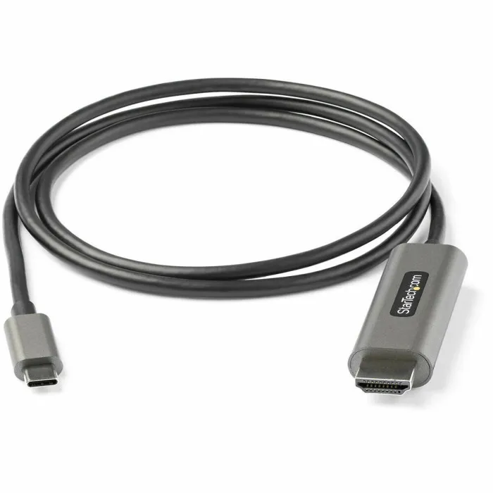 The StarTech USB-C CDP2HDMM1MH cable is a video adapter designed to connect devices equipped with USB Type-C or Thunderbolt 3-compatible ports to the HDMI standard, ideal for transmitting high-quality audiovisual content. This cable, measuring 1 meter in length and 22 mm wide, offers a direct connection that enables neat, professional setups by avoiding excess cables and adapters. It supports resolutions up to 4K at 60 Hz (3840x2160 pixels) with a bandwidth of up to 18 Gbps, and is compatible with DisplayPort 1.4 Alternate Mode and HDMI 2.0b standards. Thanks to HDR10 technology (High Dynamic Range), it delivers images with greater contrast, brightness, and more accurate color reproduction, significantly enhancing visual quality for photography, videography, digital signage, or professional presentations. The cable is made in black and gray, features male USB-C and standard Type A HDMI connectors, and weighs approximately 41 grams, providing lightness and ease of use. It also supports 4:4:4 color subsampling, meaning each pixel carries its own color, resulting in sharper images without color detail loss. Its plug & play functionality is compatible with multiple operating systems including macOS, Windows, Linux, Chrome OS, and Android, ensuring easy setup without additional software. However, to fully utilize HDR capabilities, the USB-C port must support DisplayPort 1.4 and the display system HDMI 2.0b. Note that it is not compatible with NVIDIA graphics adapters regarding multichannel audio output or 4:4:4 subsampling when used with this cable. In summary, this StarTech adapter provides a reliable and versatile solution for transmitting ultra-high-definition video signals from modern USB-C devices to HDMI monitors or screens, optimizing visual quality and enabling direct connectivity for professional and multimedia environments.